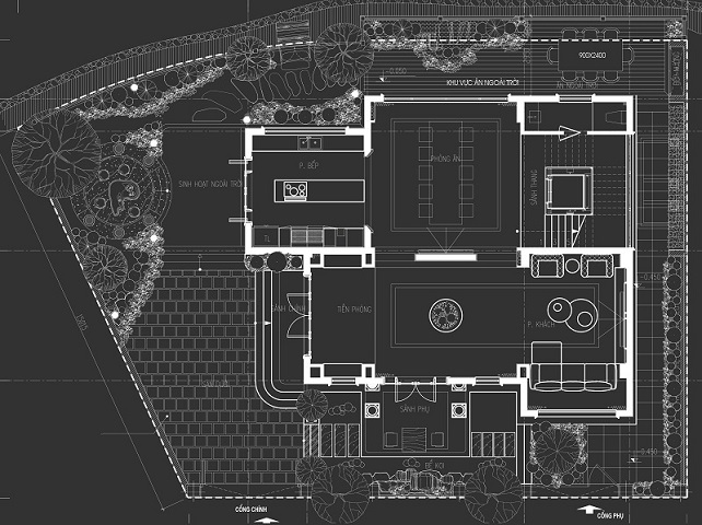 Mặt bằng tổng quan thiết kế tầng 1 biệt thự