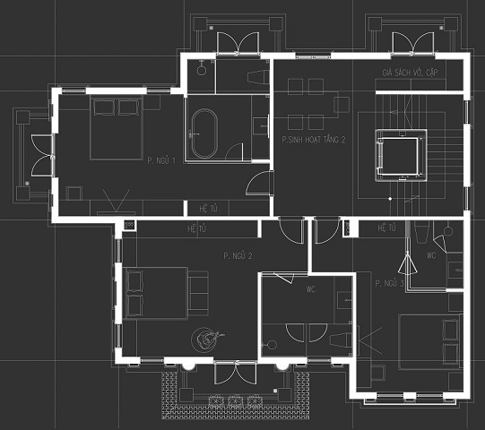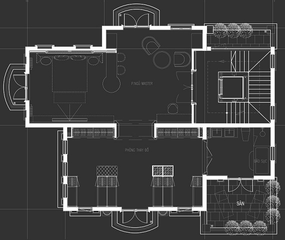 Mặt bằng tổng quan thiết kế tầng 2 biệt thự