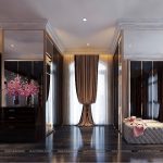 Tầng 3 chính là không gian ấn tượng nhất của gia chủ. Chị Lan muốn sử dụng toàn bộ diện tích của tầng 3 để làm phòng ngủ master. Chính vì vậy việc xử lý các không gian lớn này đòi hỏi IAA phải đưa ra các thiết kế đẹp và cao cấp hơn. Chúng tôi đã đưa chất liệu veneer Epony sơn inchem vào thiết kế. Cùng với sự kết hợp của vật liệu hoàn thiện các mép cạnh bằng inox mạ PVD. Tất cả khiến không gian trở lên sang trọng và quý phái. Bên cạnh đó việc sử dụng vật liệu da cao cấp sẽ có tác dụng khiến không gian có cảm giác mềm mại và ấm áp hơn.